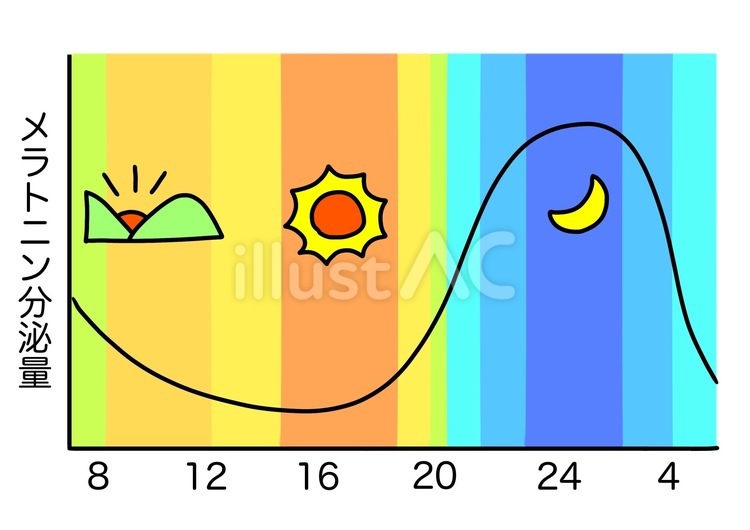 ブルーライトでメラトニン分泌が減少。