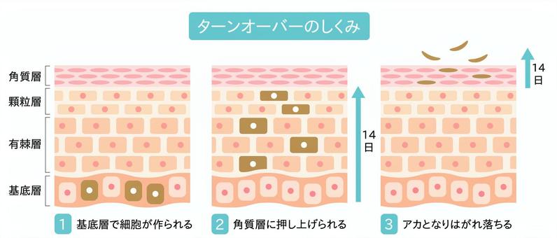 肌は約28日周期で生まれ変わります(ターンオーバー)。